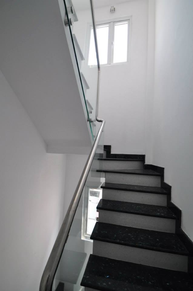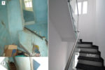 Cầu thang phía sau của căn nhà vô cùng tối tăm. Dù nhà 2 mặt tiền nhưng căn nhà cũ đã không tận dụng được thế mạnh của mặt tiền thứ 2. Vì thế toàn bộ cầu thang cũ được cắt bỏ do nó nằm trong góc kẹt và được dời ra sát với hẻm bên hômng nhà. Chỉ vậy thôi là ta đã có thể mở cửa để lấy sáng cho khu cầu thang đồng thời thông gió cho toàn bộ căn nhà.